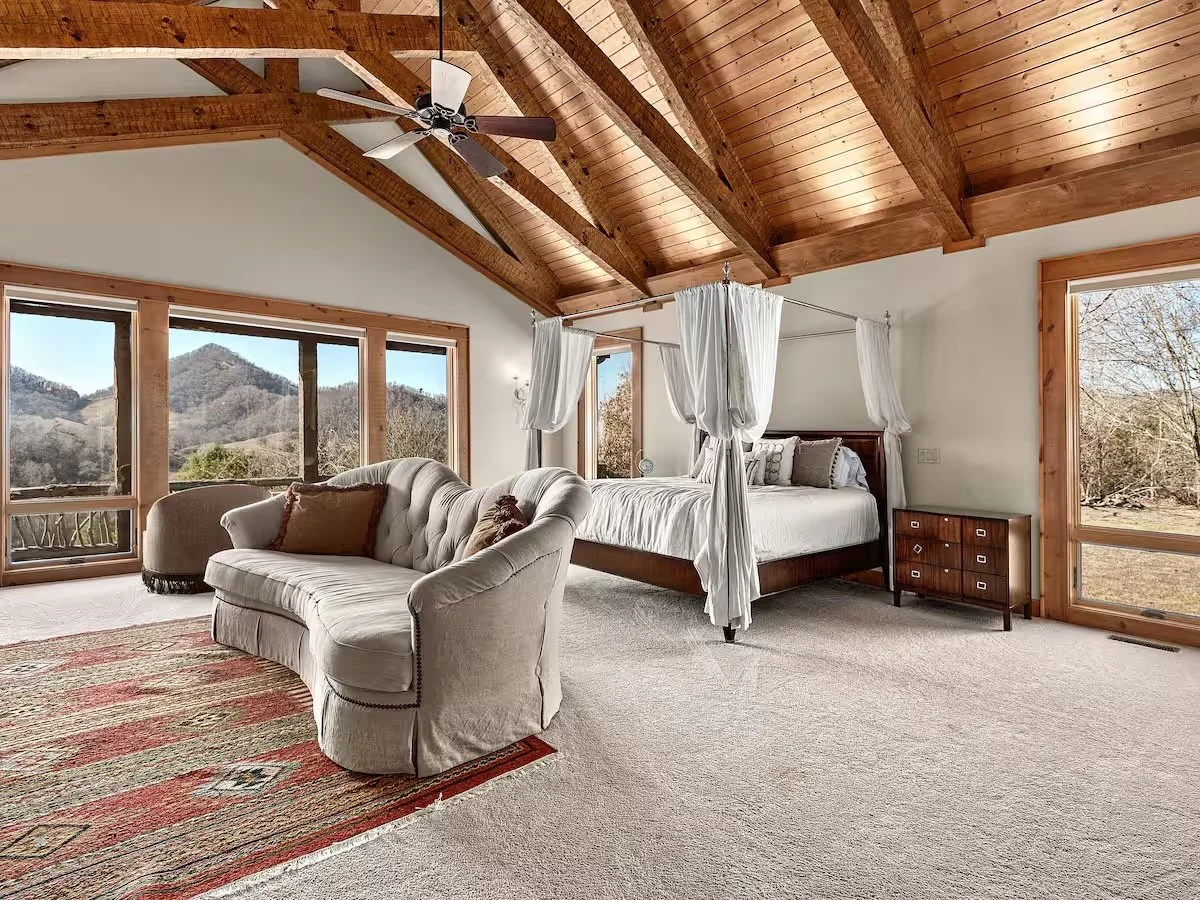 Bedroom 5/Primary Suite (Main Level): 1 king bed with an en suite bathroom. Room also includes a fireplace with gas logs.