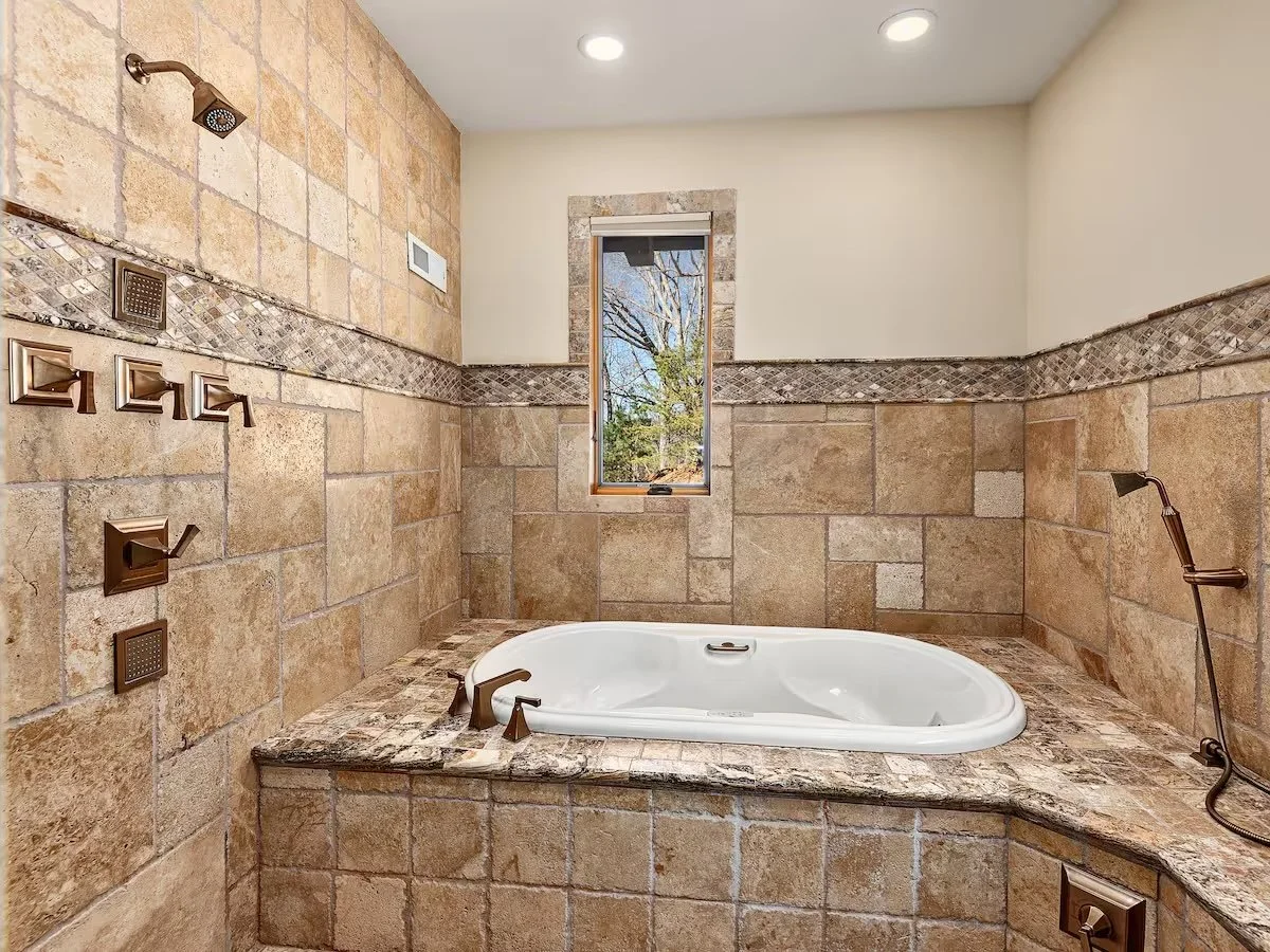 Bedroom 5/Primary Suite (Main Level): En suite bathroom with jacuzzi tub.