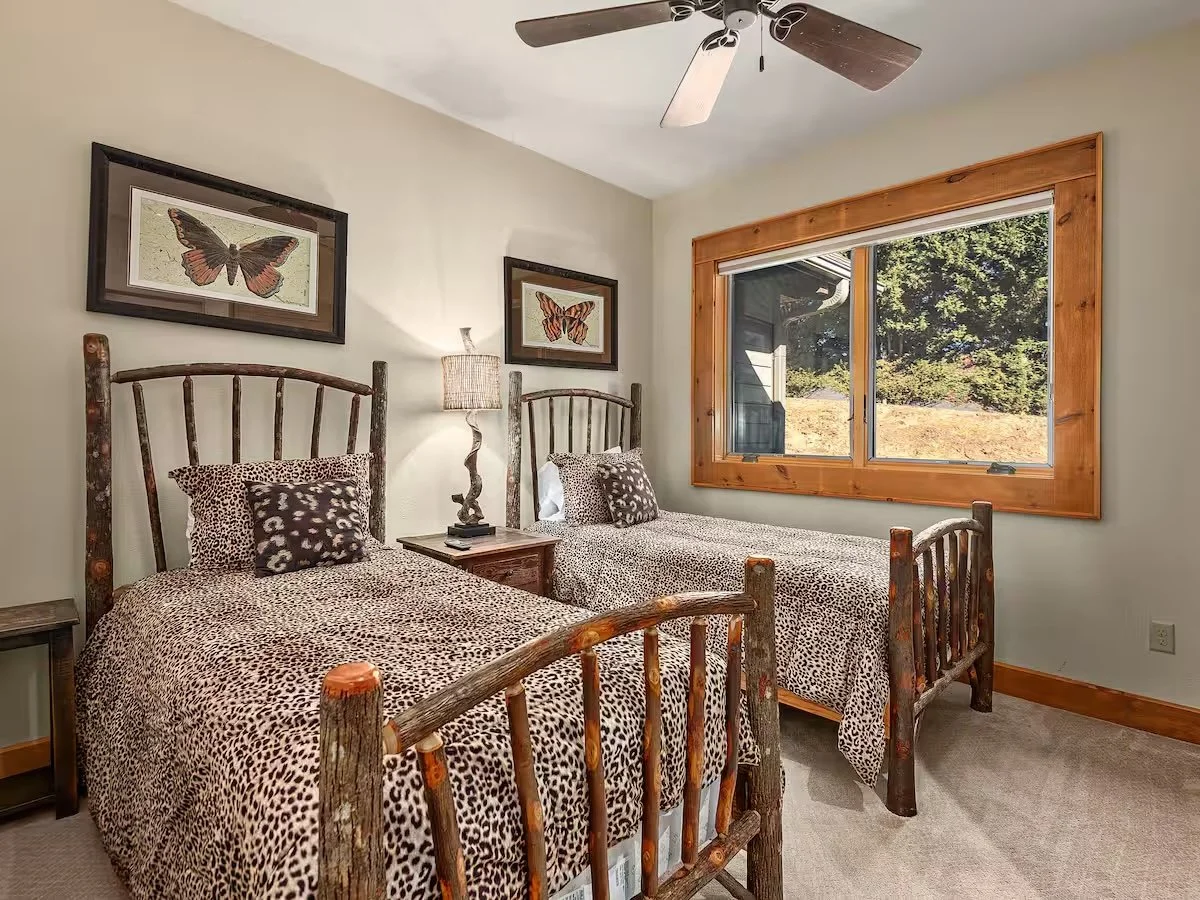 Bedroom 2 (Main Level): 2 single beds with an en suite bathroom. Sleeps 2 people.